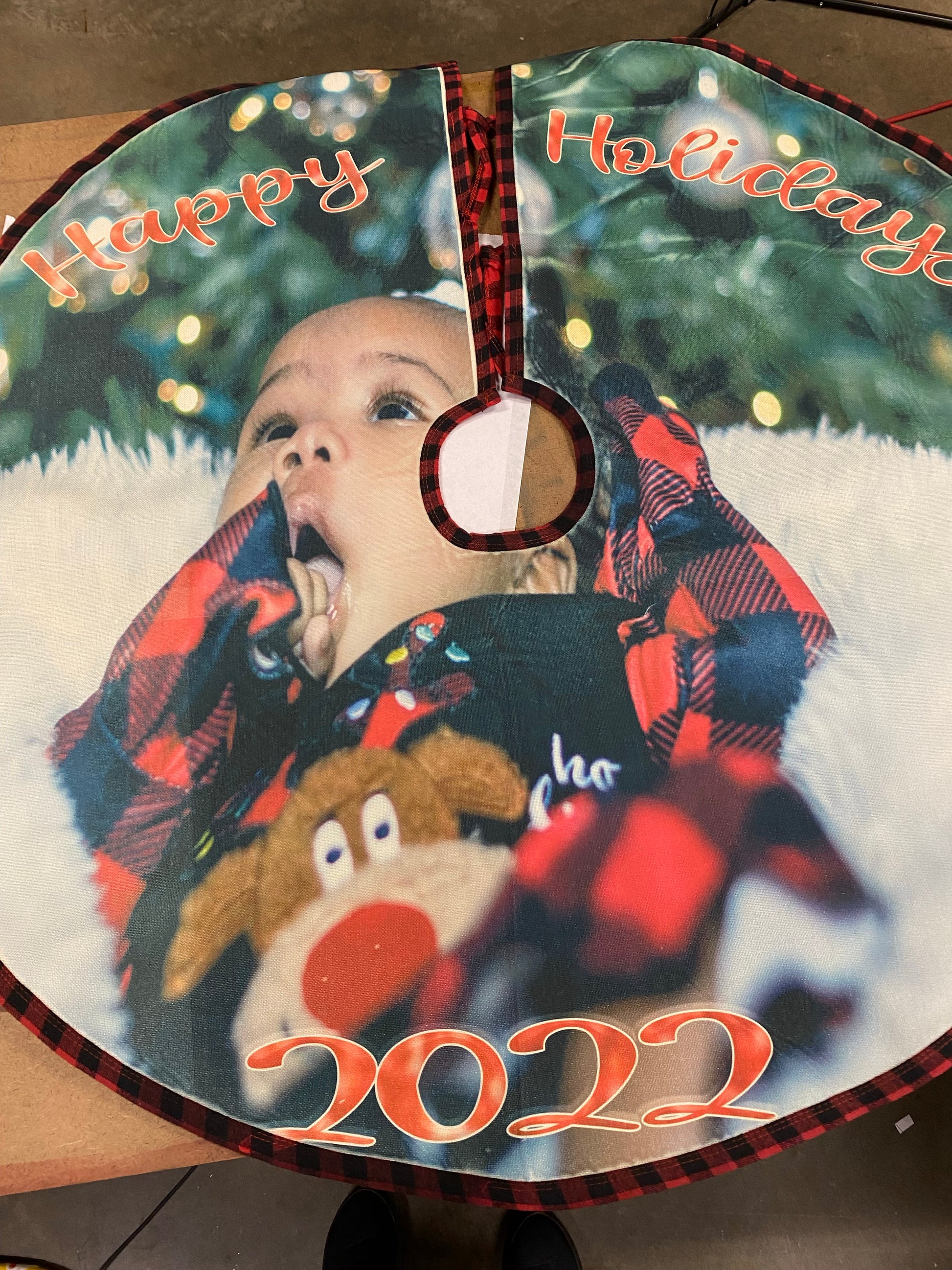 These tree skirts are a beautiful addition to your Christmas decorations, you can add a picture to them.